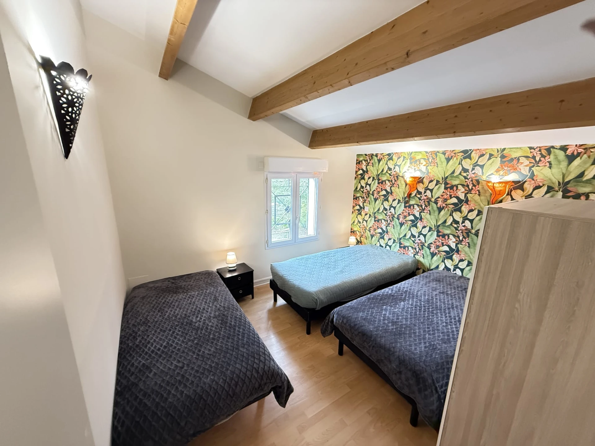 Chambre naturellement fraîche grâce à son emplacement au cœur de l’habitation, entourée de pièces climatisées.