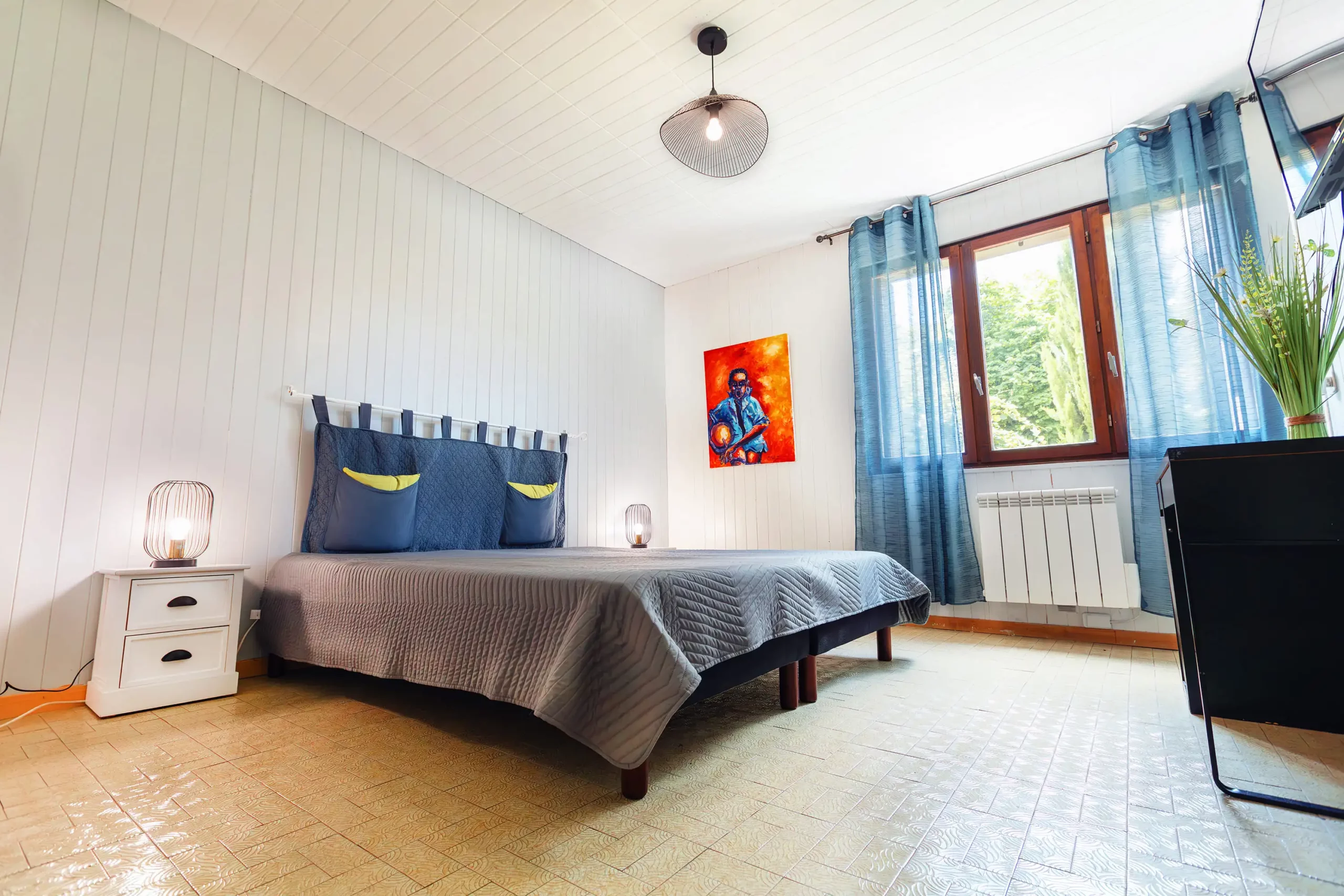 La Villa des Eaux Douces vous accueille dans un cadre naturel d’exception, avec 6 chambres et une capacité jusqu’à 15 couchages. Chaque chambre est aménagée avec soin : qu’il s’agisse d’un lit Queen size pour votre parenthèse en duo, d’une chambre conviviale pour enfants ou d’un espace pour amis sportifs – vous trouverez ici l’espace adapté. Avec 4 salles d’eau et des lits multiples (lits simples, lits queen, lits bébé), la villa combine confort et liberté.